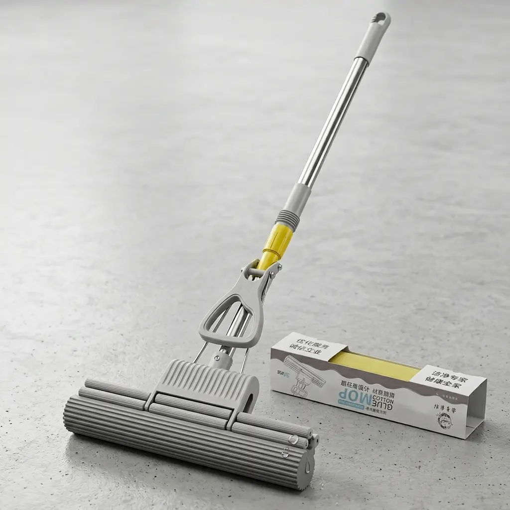 Esta mopa escurrible con rodillo exprime el agua automáticamente, dejando las superficies limpias, casi secas y sin esfuerzo.